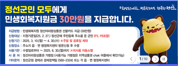 6. 정선군 민생회복지원금 신청 요약