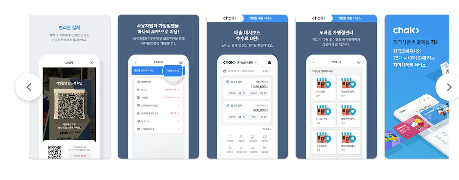 - 사용 가능한 가맹점은 지역상품권 chak(착) 앱에서 확인할 수 있음